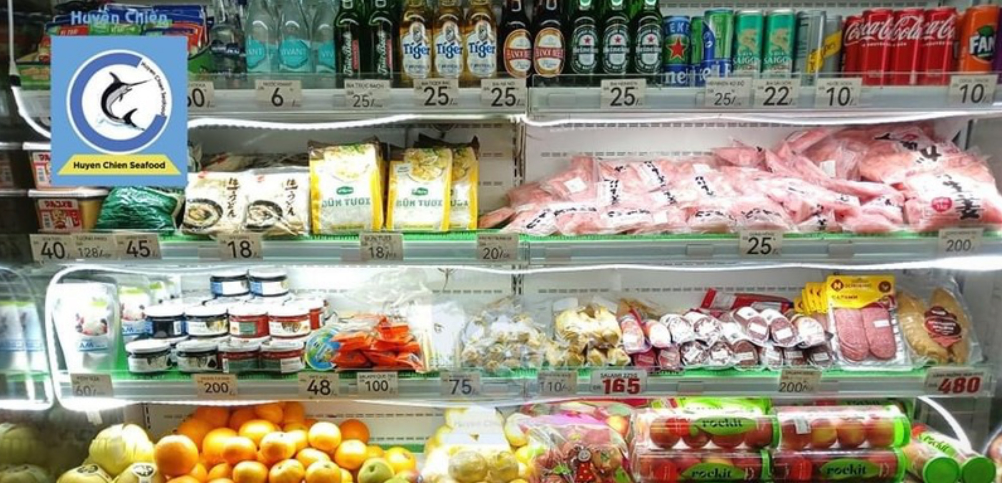 Ngoài việc cung cấp các sản phẩm thuỷ hải sản phong phú, Huyền Chiến còn mở rộng ra các mặt hàng thực phẩm nhập khẩu chất lượng cao, như rau, củ, quả và gia vị sốt chấm đa dạng, giúp khách hàng có nhiều lựa chọn hơn khi mua sắm.