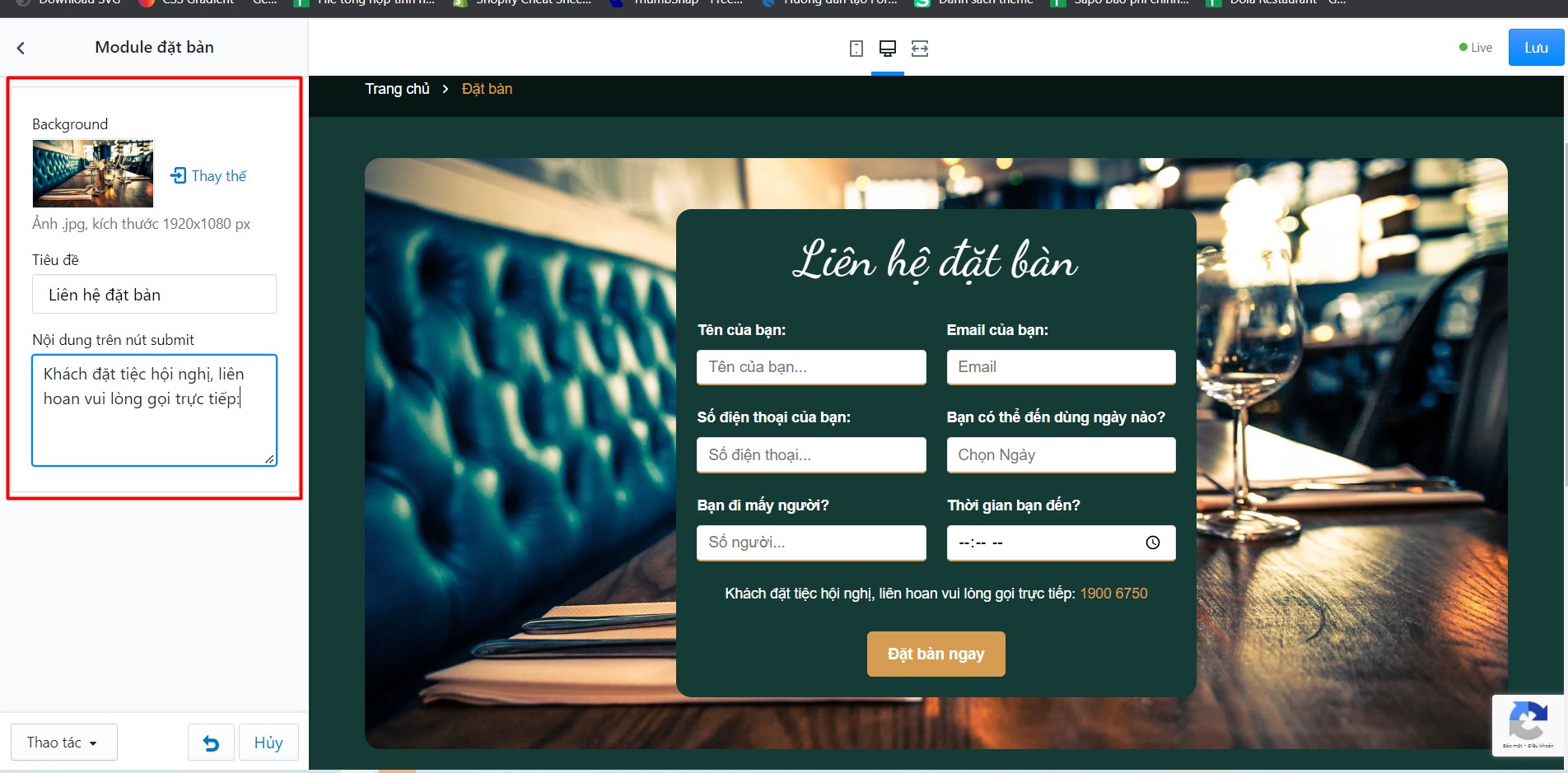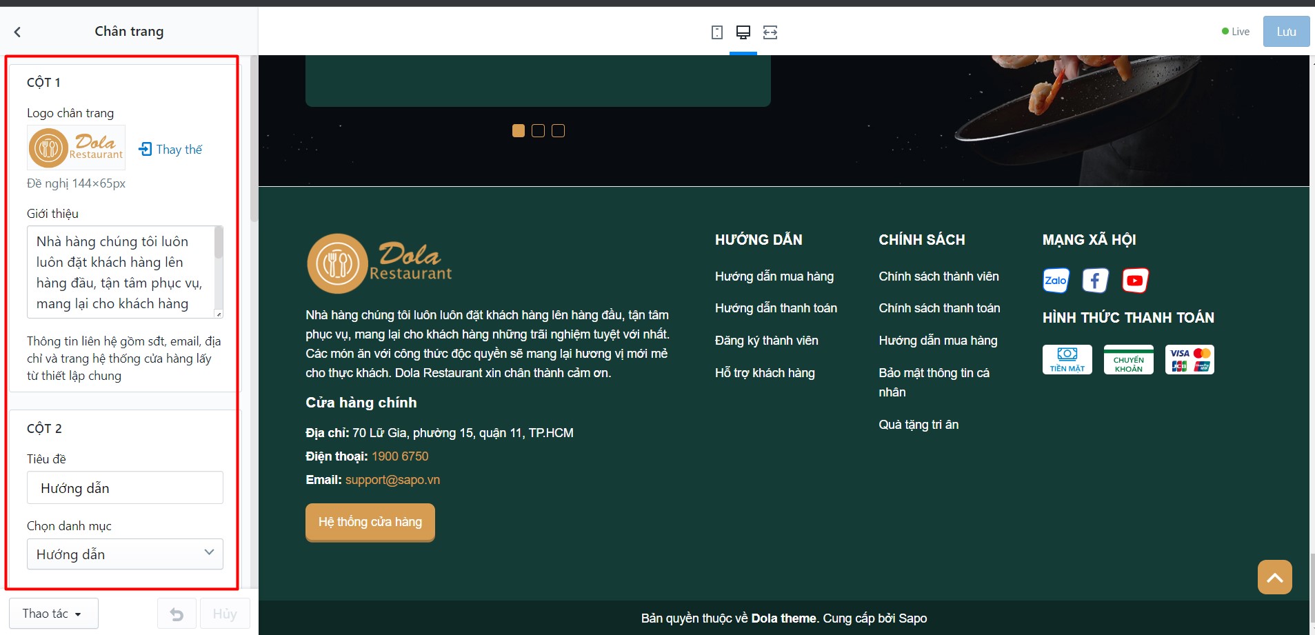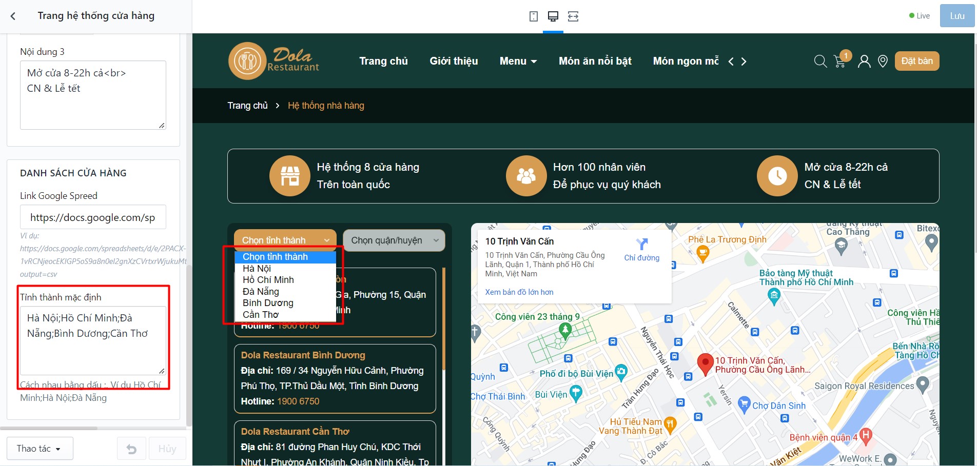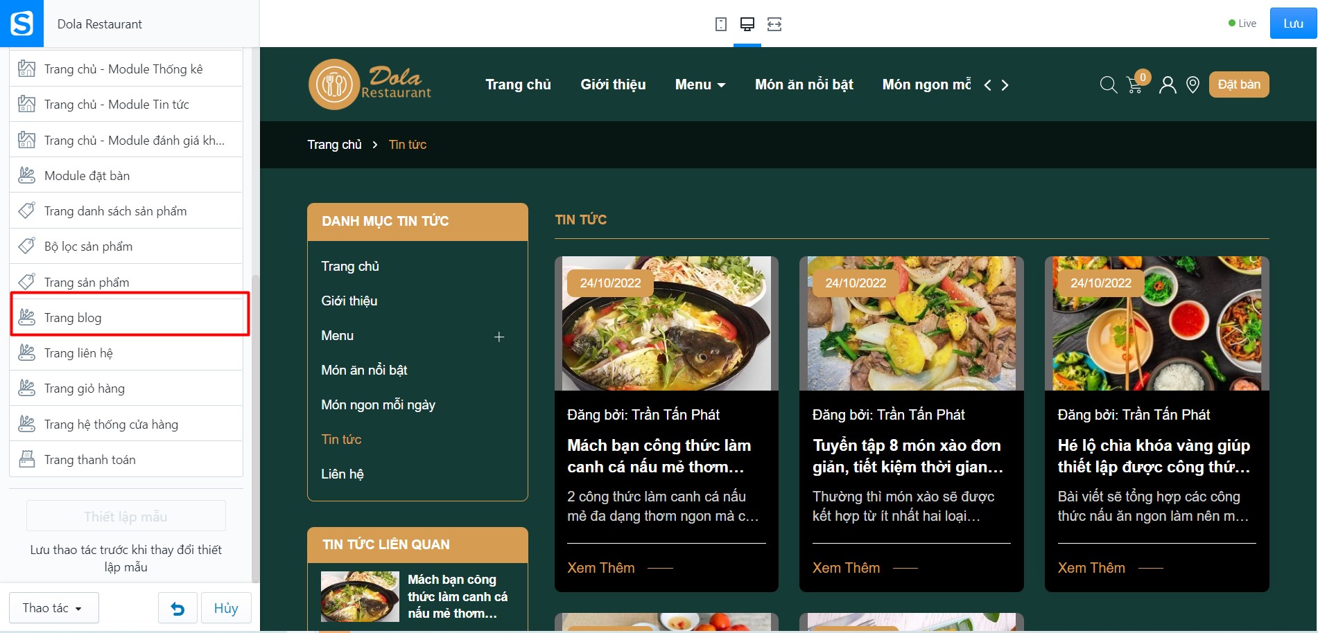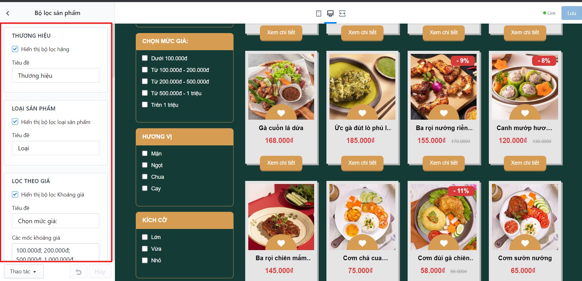 Tại đây bạn thiết lập các danh mục món ăn nổi bật của nhà hàng, thiết lập bao gồm ảnh, tiêu đề, nội dung, liên kết, ...: