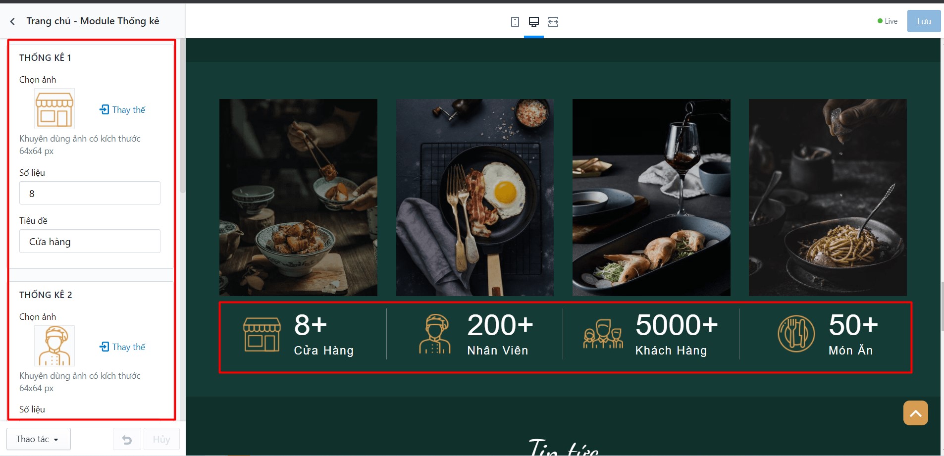 Tại đây bạn có thể thiết lập các thống kê nổi bật của nhà hàng bạn ...:
