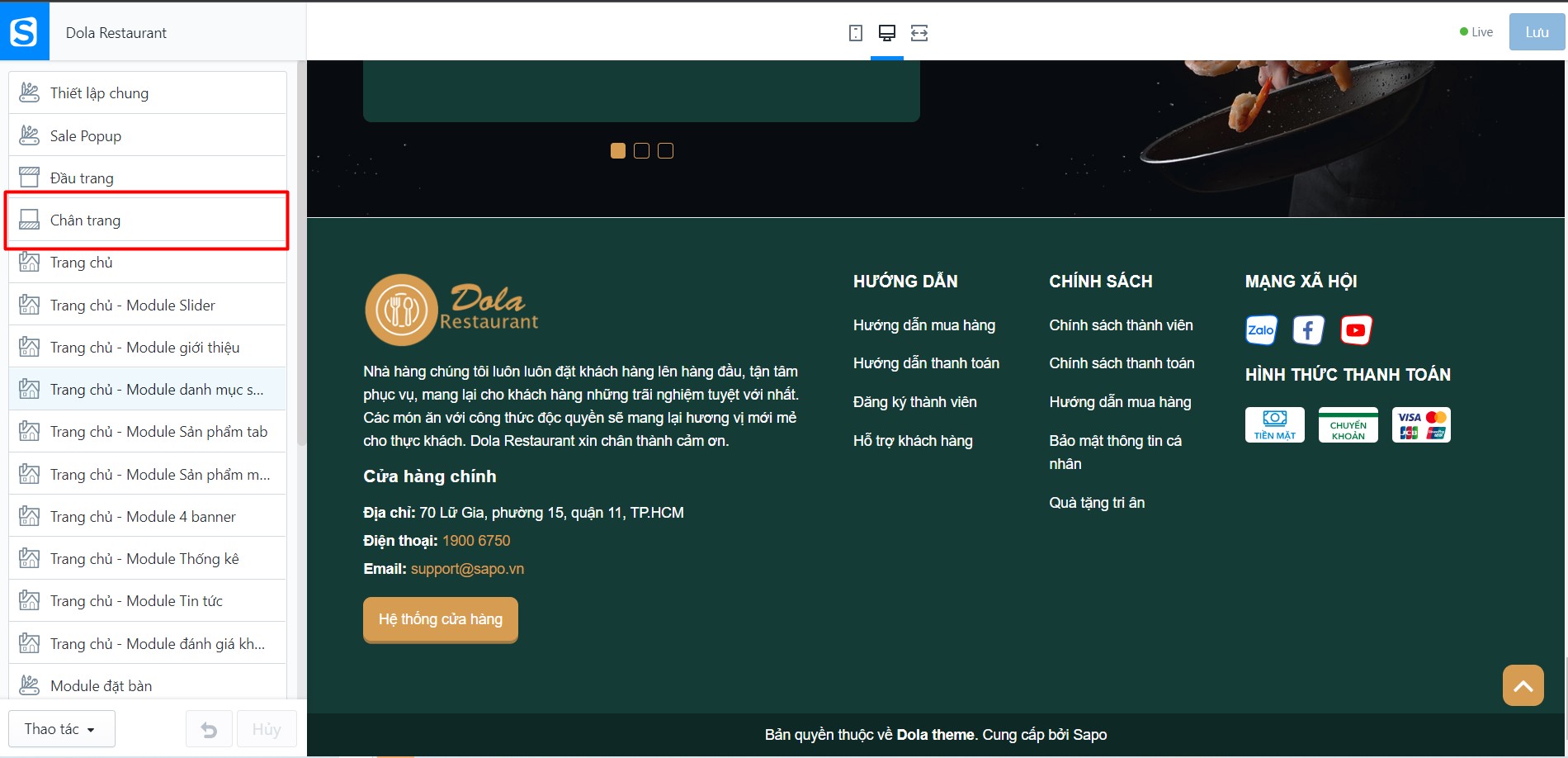 Để thiết lập chân trang, bạn cần tìm đến Chân trang: