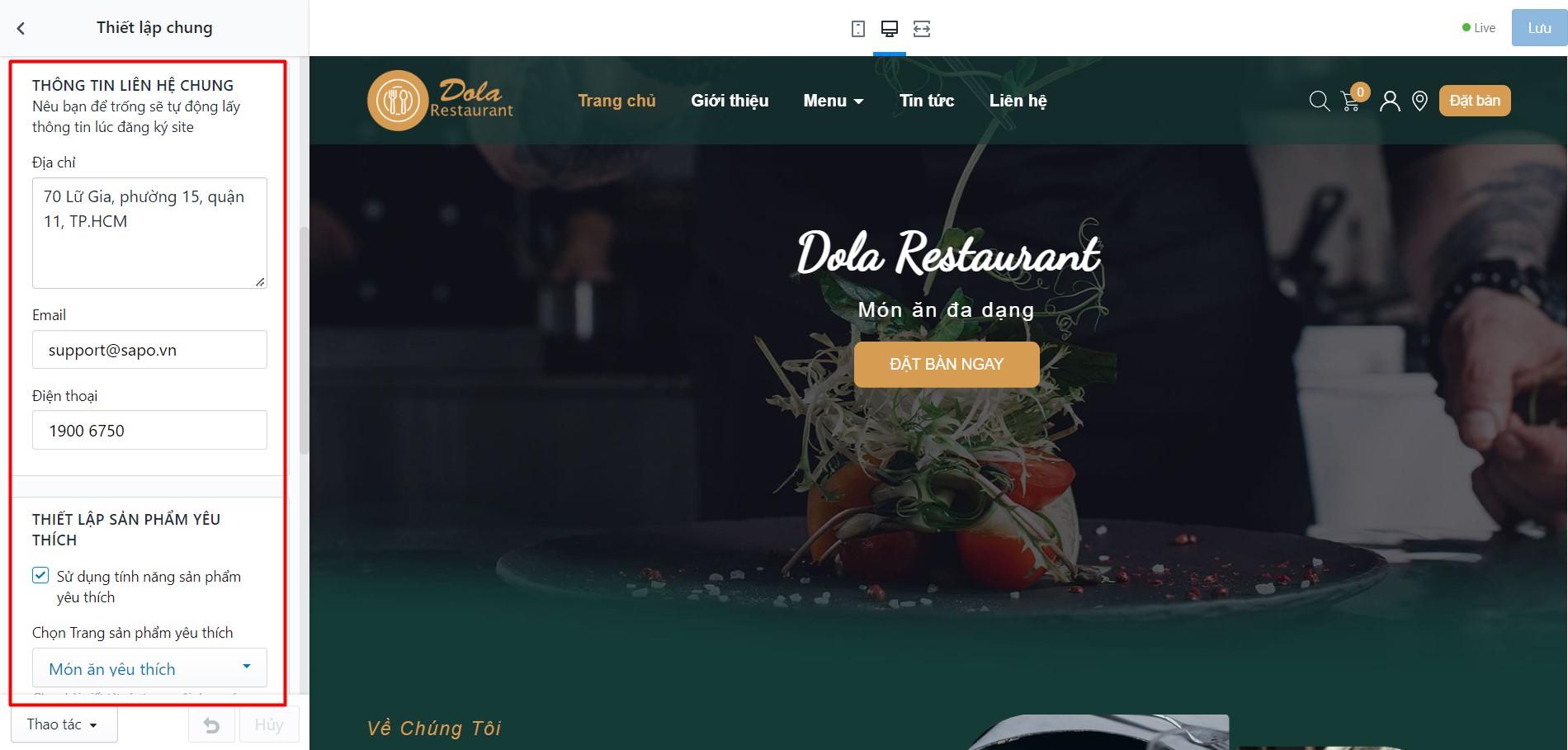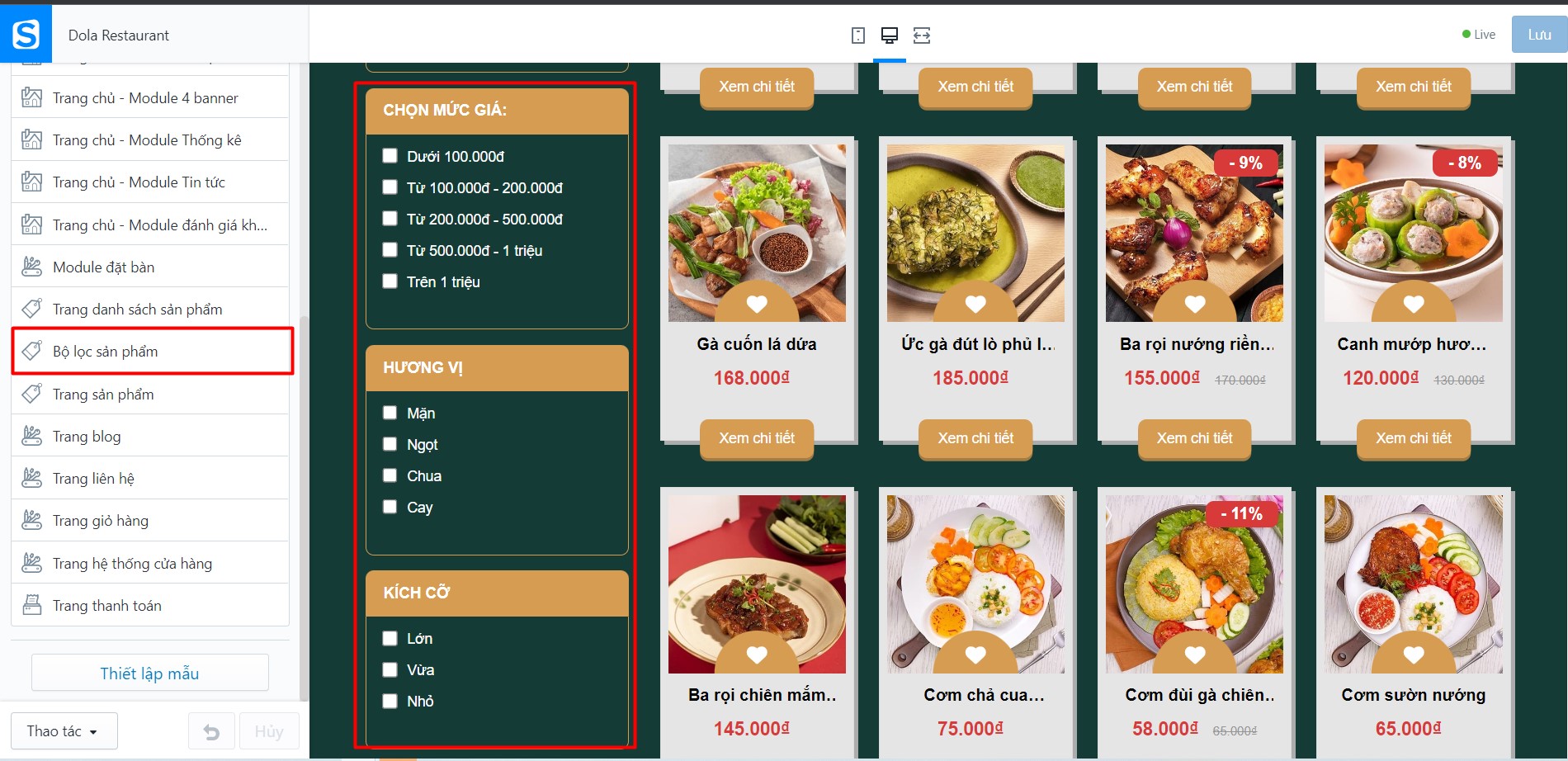 Tại đây bạn có thể thiết lập các món ăn nổi bật trong nhà hàng ...: