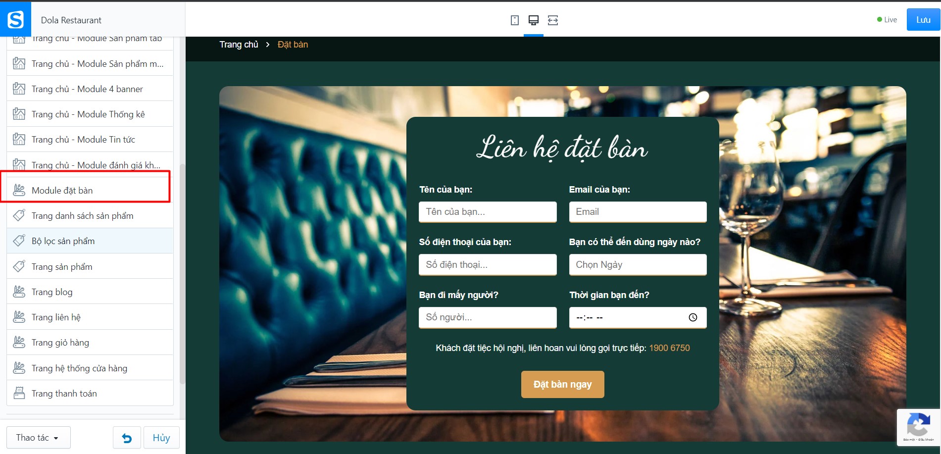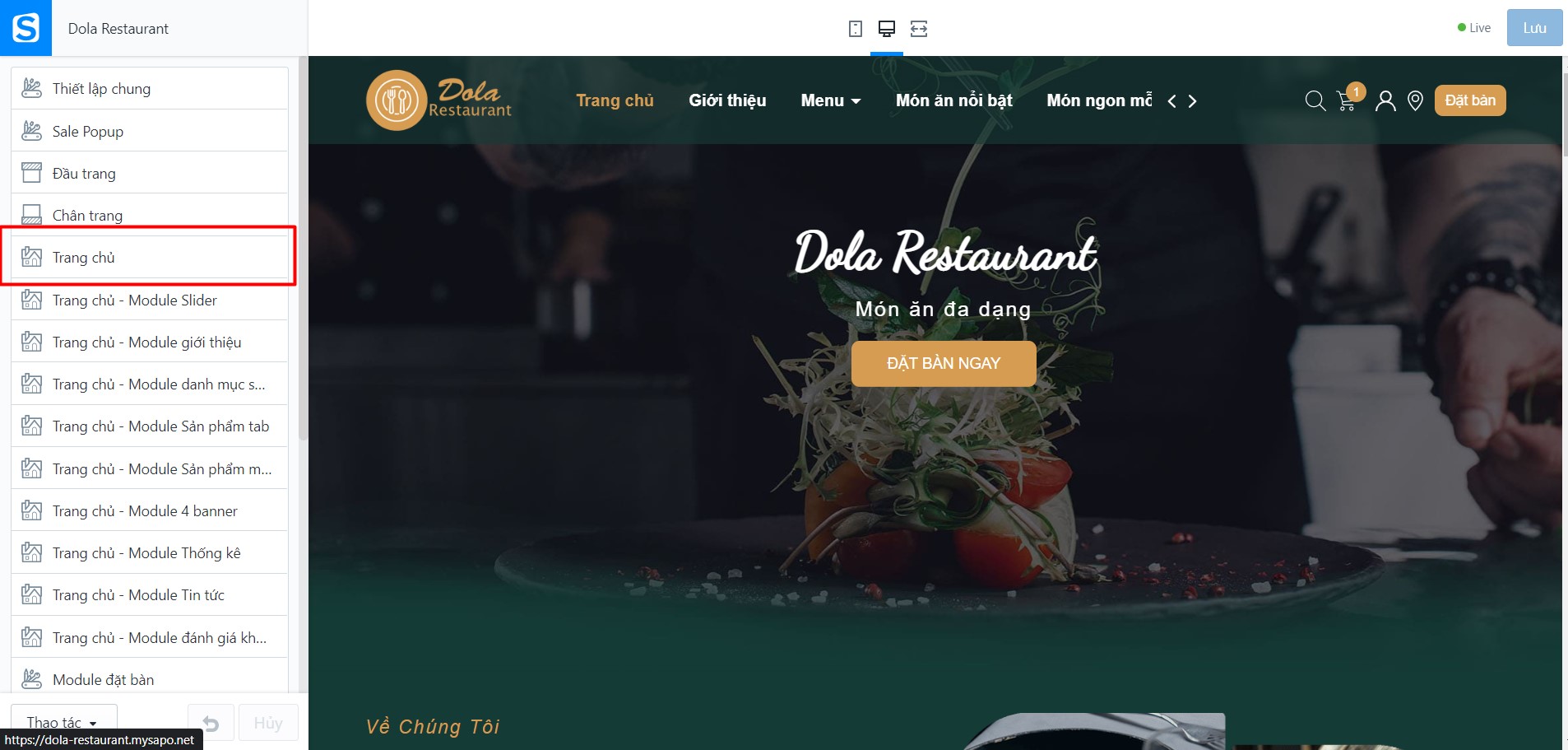 Tiếp theo bạn cần tìm đến Thiết lập giao diện đặt bàn:
