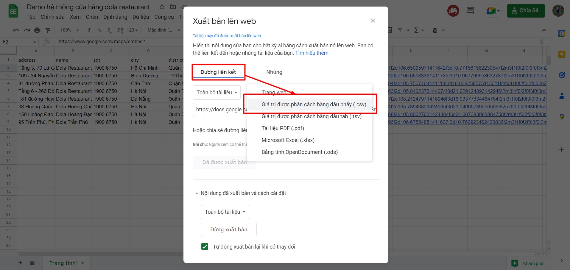 Bước 4: Để hiển thị thành phố chỗ này thì nhập ở đây ạ, cách nhau bằng dấu ;
