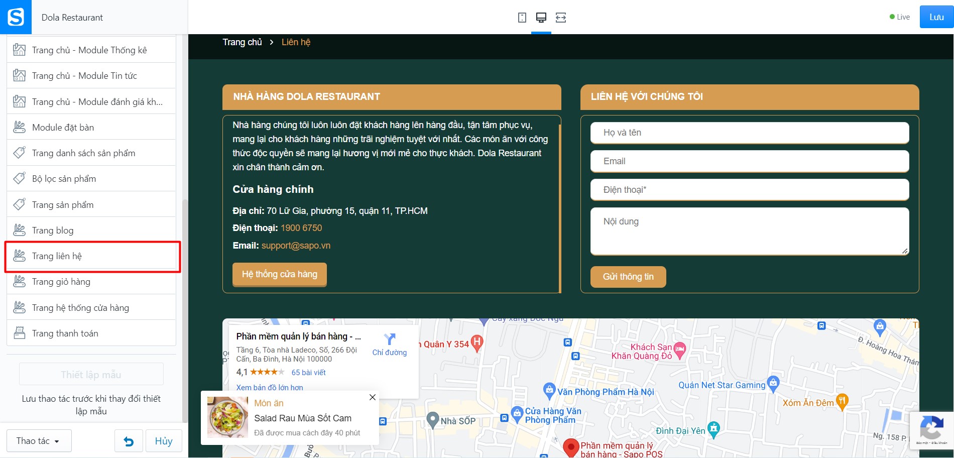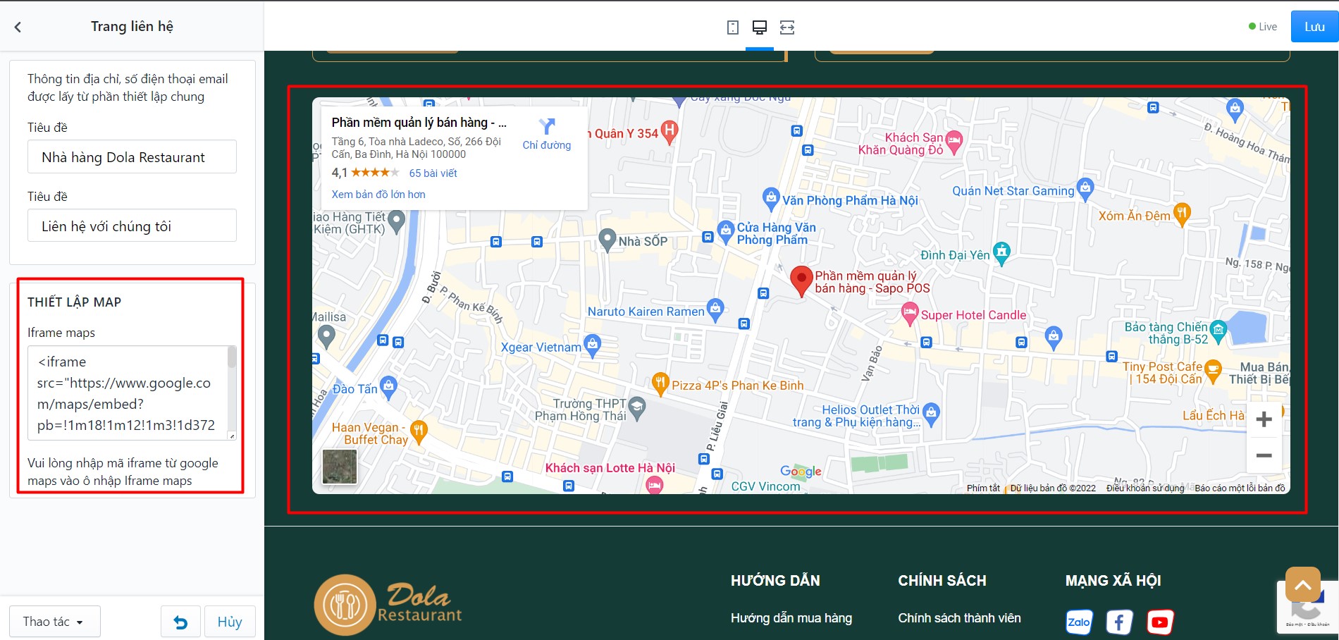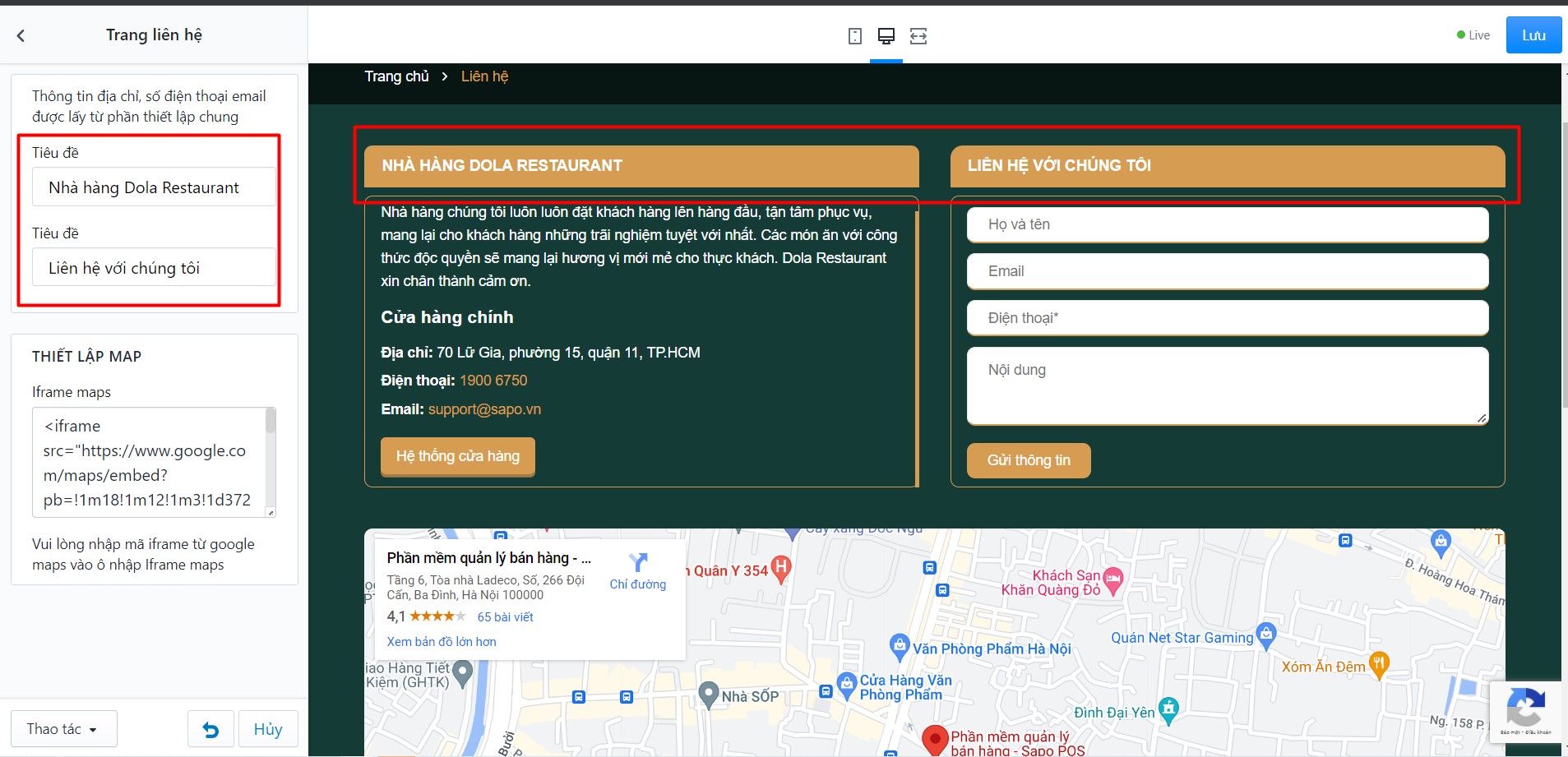 Tại đây bạn có thể thay đổi Bản đồ cũng như các thông tin liên hệ: